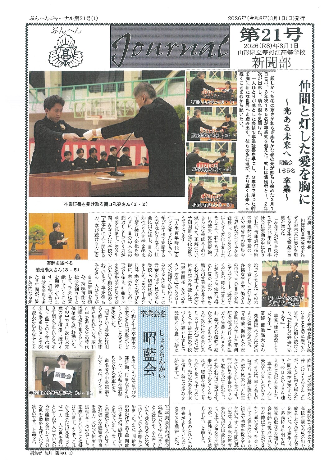 寒河江高校です。学校からのお知らせ、学校生活などお知らせします。