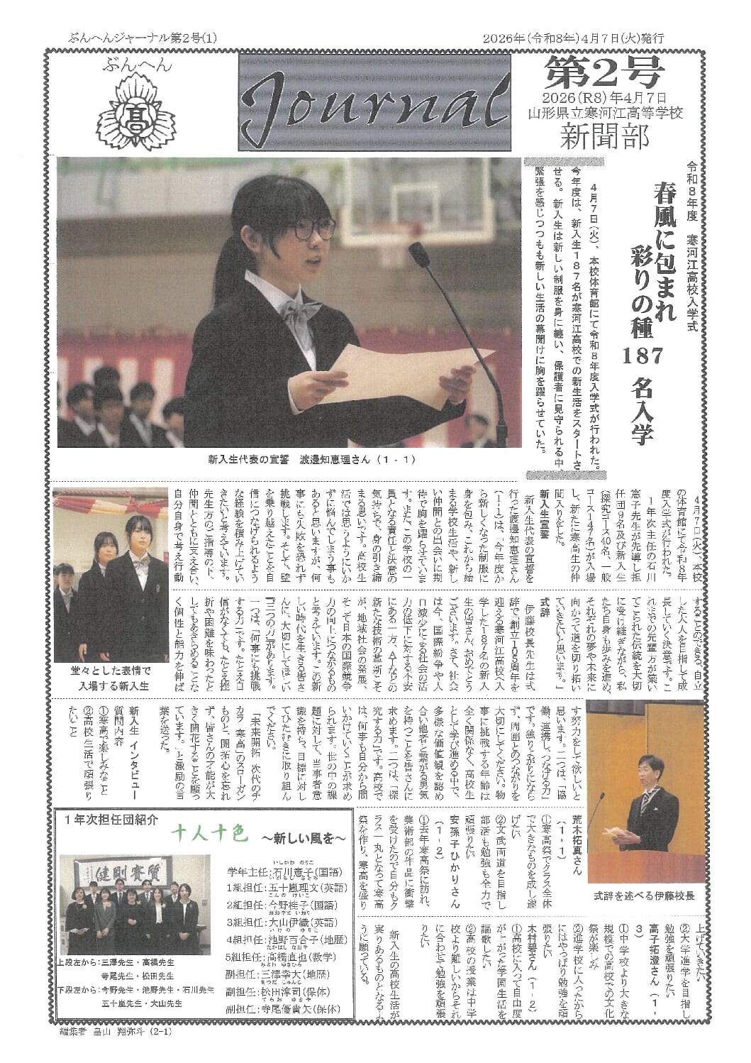 令和8年度山形県立寒河江高等学校入学者選抜合格者への資料については、山形県公立学校Web出願システムに「合格者向け資料」として掲載しております。 掲載した資料「④ 本校の制服および自転車通学について」の「3 基準服購入に … “令和8年度山形県立寒河江高等学校入学者選抜合格者への資料の訂正について” の続きを読む